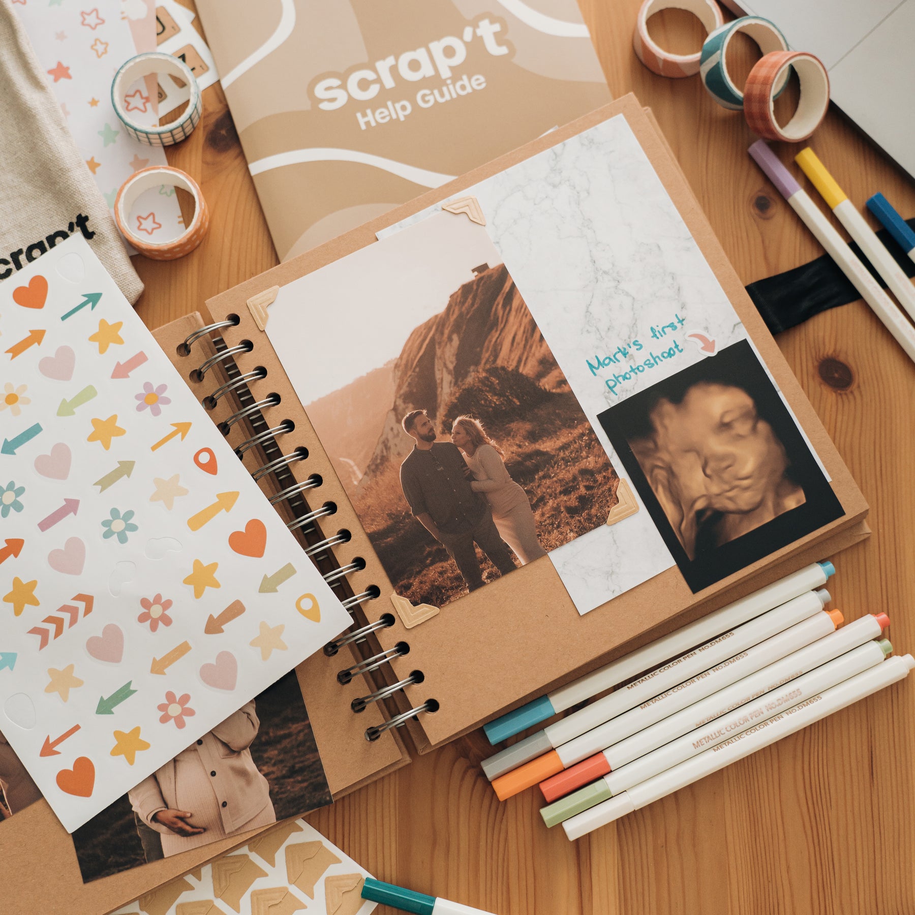 Our Scrapbook Kit is the perfect way to capture and cherish life’s most precious moments, from milestone birthdays to family vacations. This beautifully designed album allows you to highlight your favorite photos while providing enough space for captions, souvenirs, and personal notes.
